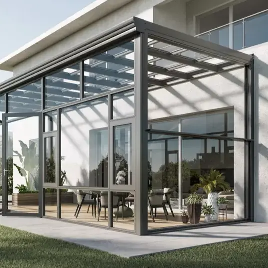 4. نطاق التخصيص: يدعم تخصيص أشكال غرف التشمس المصنوعة من سبائك الألومنيوم ومواصفات الزجاج والإطار الألوان لتلبية الاحتياجات المتنوعة للهندسة والديكور المنزلي.